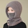 Bonnet en Laine Tricotée avec Ajustement à Lacets Doublure en Velours Protection Visage Cou Coiffure d'Équitation Chapeau Chaleur Hivernale