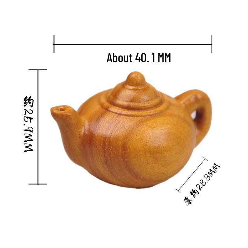 Pendentif Porte-clés Accessoire Théière en Bois de Santal Doré Wenwan Sculpté