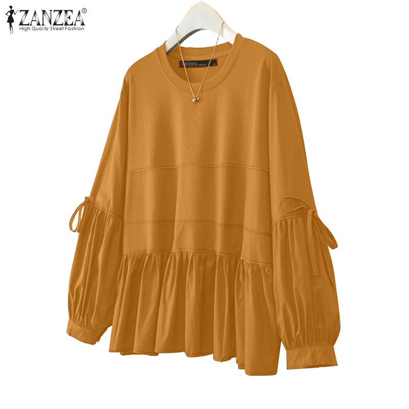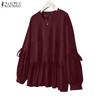 ZANZEA Blouse unie décontractée à manches longues et col rond pour femmes