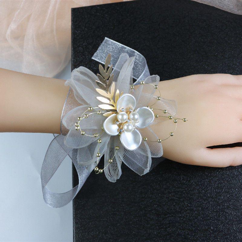 Korean Style Pearl Butterfly Wrist Corsage - Bridal & Bridesmaid Net Yarn Bracelet