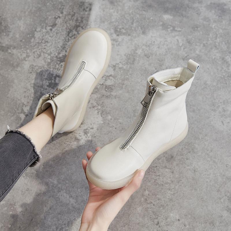 Bottines femme 2025 nouvel automne et hiver tendon de bœuf bottes Martin polyvalentes montantes chaussures femme bottes à fermeture éclair avant style rétro