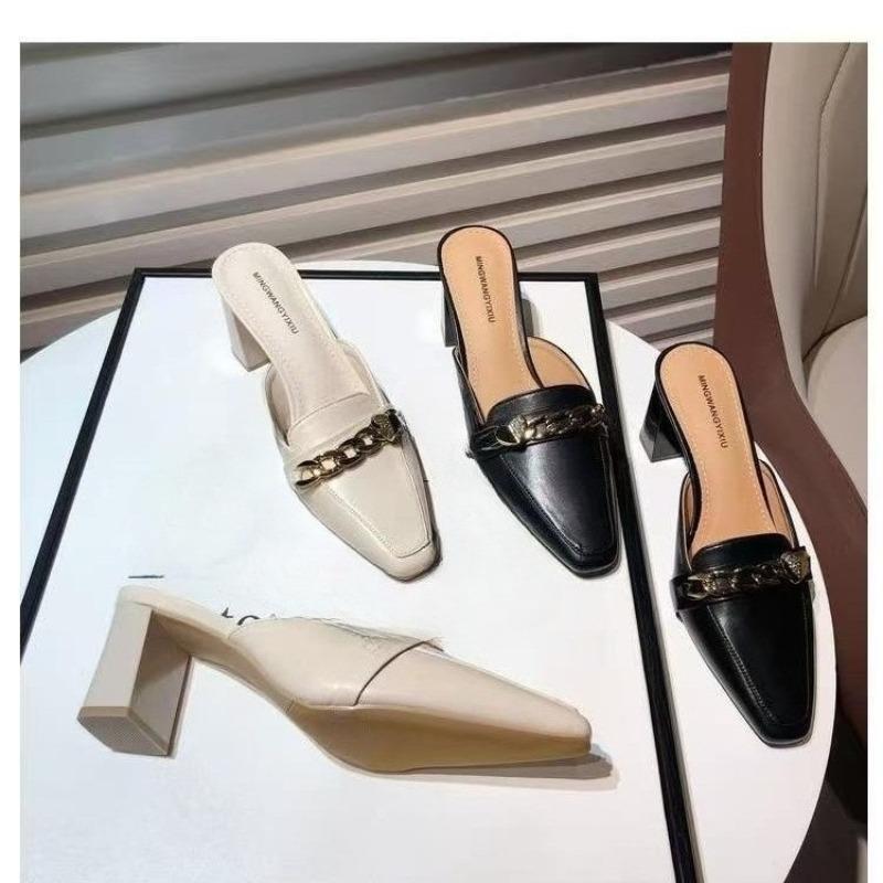 Mules Baotou Mode Femme Extérieur Polyvalent Sandales et Mules à Talons Hauts 2025 Nouveau Talon Bloc Bouche Basse Semi-mules