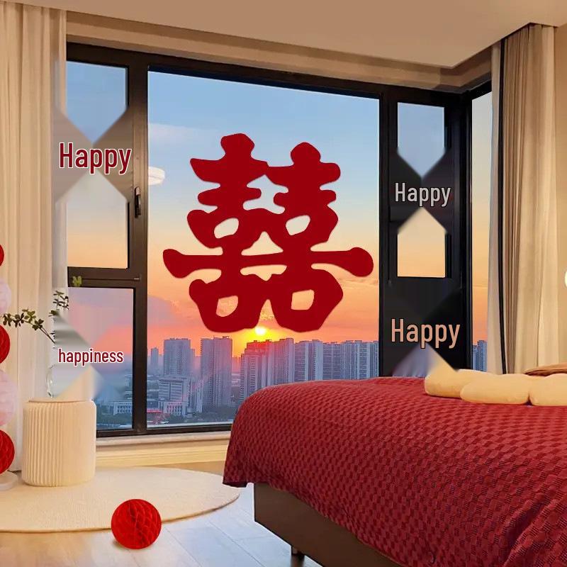 Lot d'autocollants Double Bonheur de Mariage: Décorations de chambre, fenêtre, porte et fiançailles