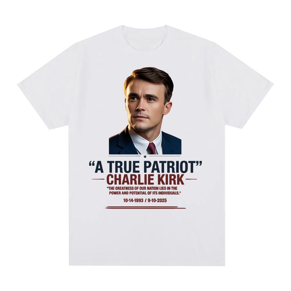 T-SHIRT "UN VRAI PATRIOTE" CHARLIE KIRK Unisexe T-shirt d'été Manches Femmes/hommes Décontracté T-shirt 100% coton Col rond T-shirts confortables