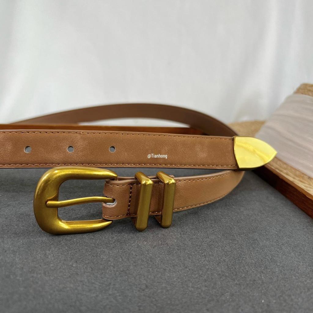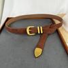 Ceinture Rétro à Boucle Dorée en Daim - Accessoire en Cuir de Vachette Style Myerard pour Pantalon
