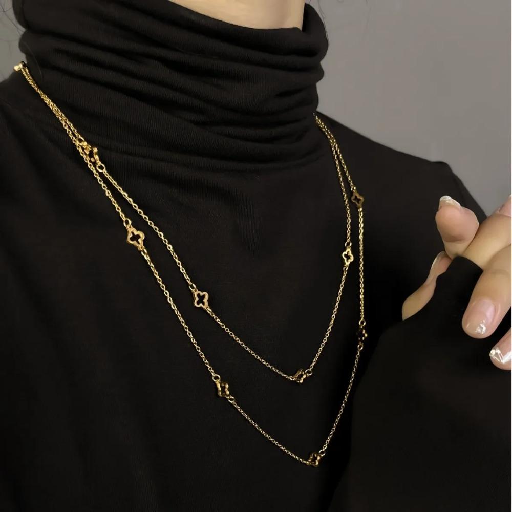 Long Collier Trèfle à Quatre Feuilles Chaîne de Pull pour Femme Acier Titane Multicouche Haut de Gamme Feelunique 2023 Bijoux Nouveaux Tendance