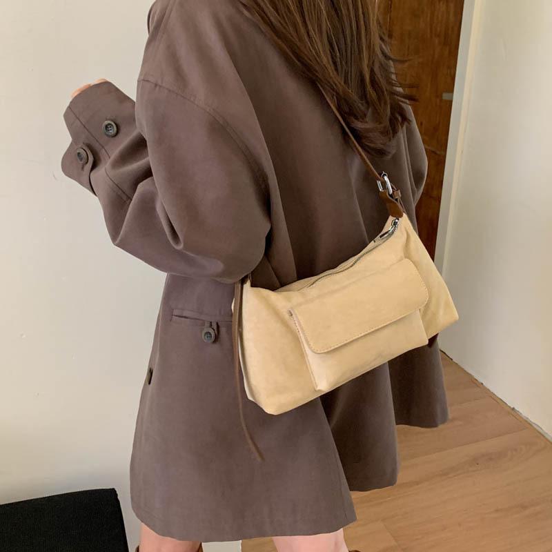 Autumn and winter retro underarm bag women's 2025 new suede fleece small square bag simple one-shoulder crossbody bag drop shipping