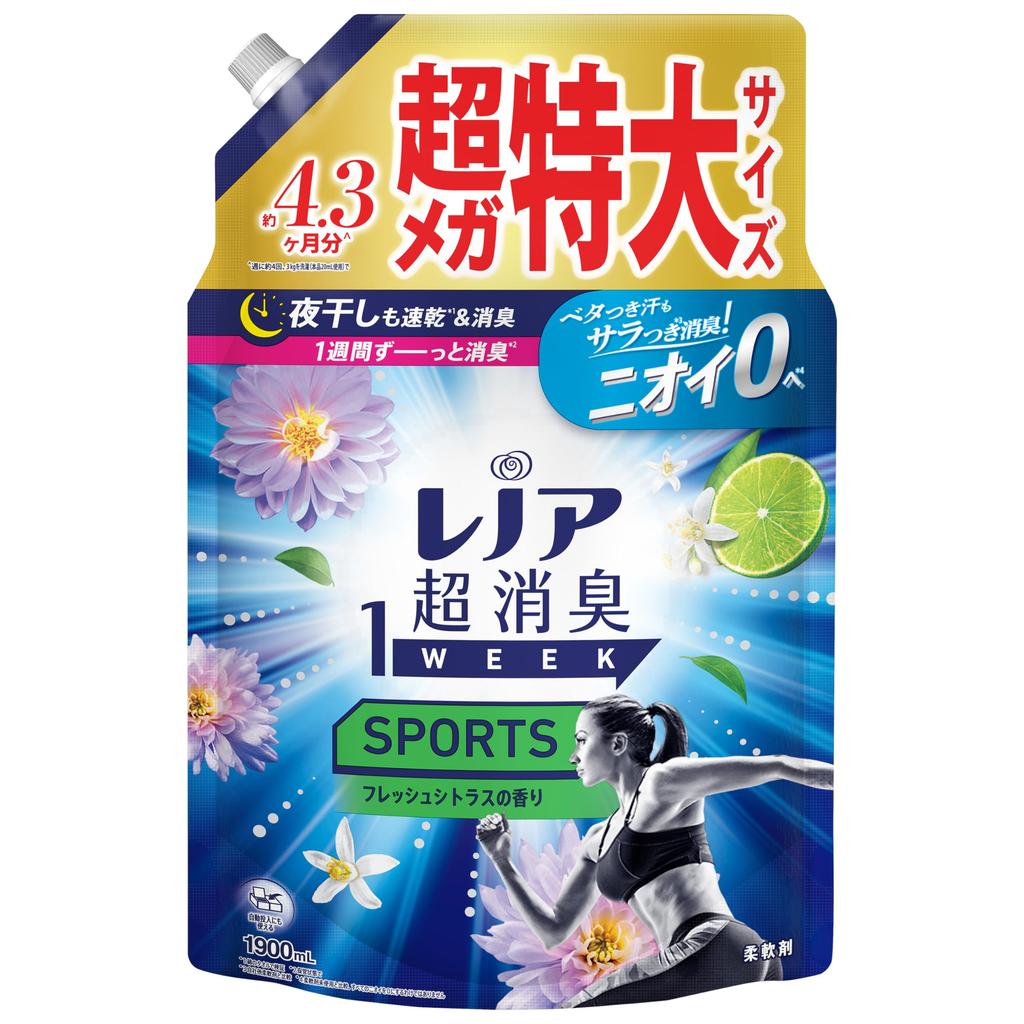 Lenor Super Deodorizing 1-Week Fabric Softener, Sports, Fresh Citrus, Refill, 1,900mL [Large Capacity]