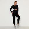Ensemble de yoga plissé sans couture européen-américain: Ensemble deux pièces de fitness à manches longues et taille haute pour femmes