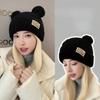 Chapeau Tricoté Femme Coupe-Vent Chaud Couleur Unie Élastique Chapeau d'Hiver Décor Oreilles d'Ours Chapeau en Peluche Temps Froid