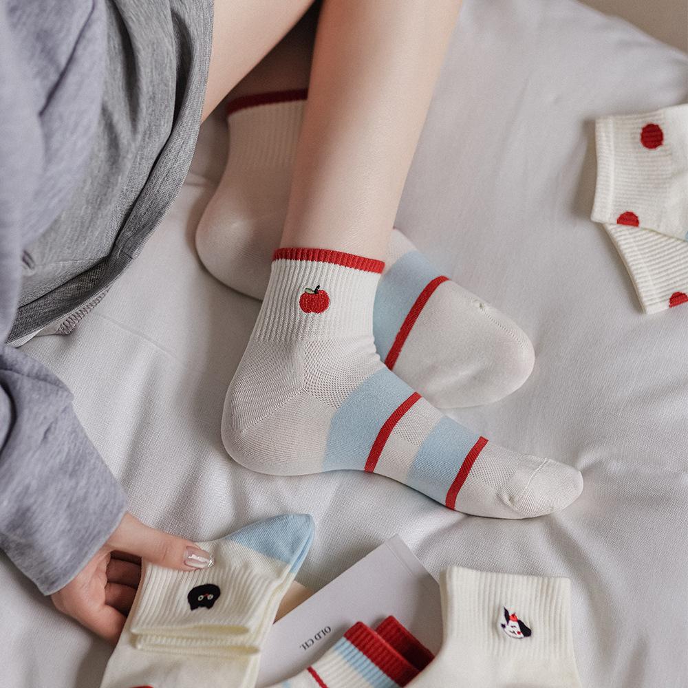Chaussettes Blanches Chaussettes Courtes pour Femmes Été Fines Style Sportif Coréen Chaussettes Basses Respirantes Absorption de la Sueur