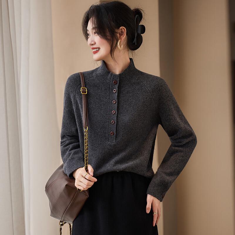 Pull Col Montant Mi-Haut Femme 100% Laine