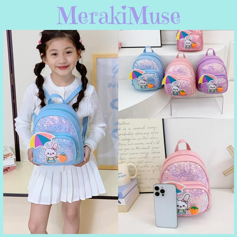 Rabbit Bright Sequin Pattern Backpack With Pu Fabric For Schoolbag Learning