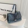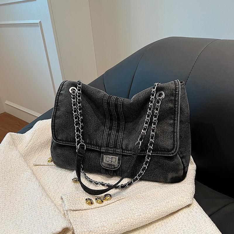 Sac bandoulière décontracté en denim grande capacité pour femme avec chaîne