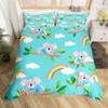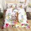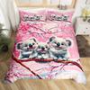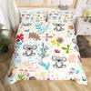 Kids Koala Duvet Cover Set, Blooming Floral Branch With A Bear Comforter Cover, Palm Tree Leaf Wildlife Cartoon Bedding Set,Twin