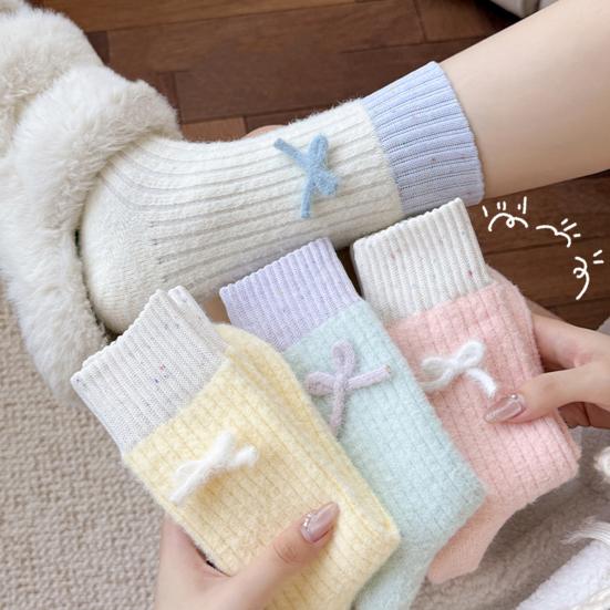 Chaussettes d'hiver pour femmes, chaussettes chaudes côtelées extensibles avec nœud, chaussettes épaissies respirantes décontractées pour la maison, le sommeil, les courses quotidiennes