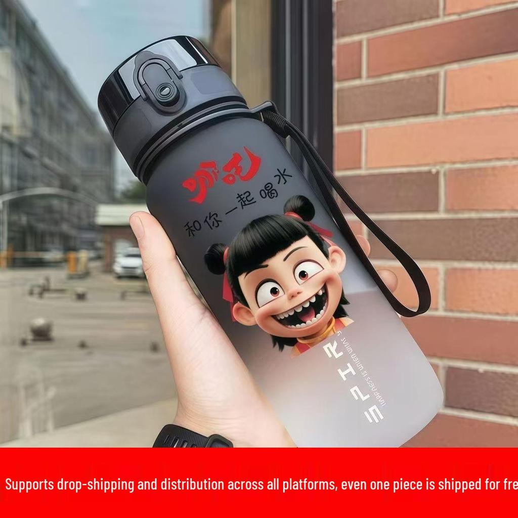 Nezha Student Water Bottle: Portable, Food-Grade Plastic for Direct Drinking, Unisex School Cup