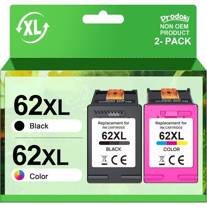 Cartouche Imprimante - PRODOKI - 62XL - Compatible HP - Pack de 2 - Noir et Couleur