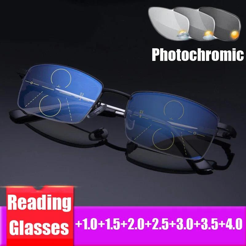 Finished Photochromic Multifocal Presbyopia Glasses Fashion Trend Titanium Alloy Outdoor Anti-Uv Near Far Sight Sun Eyeglasses