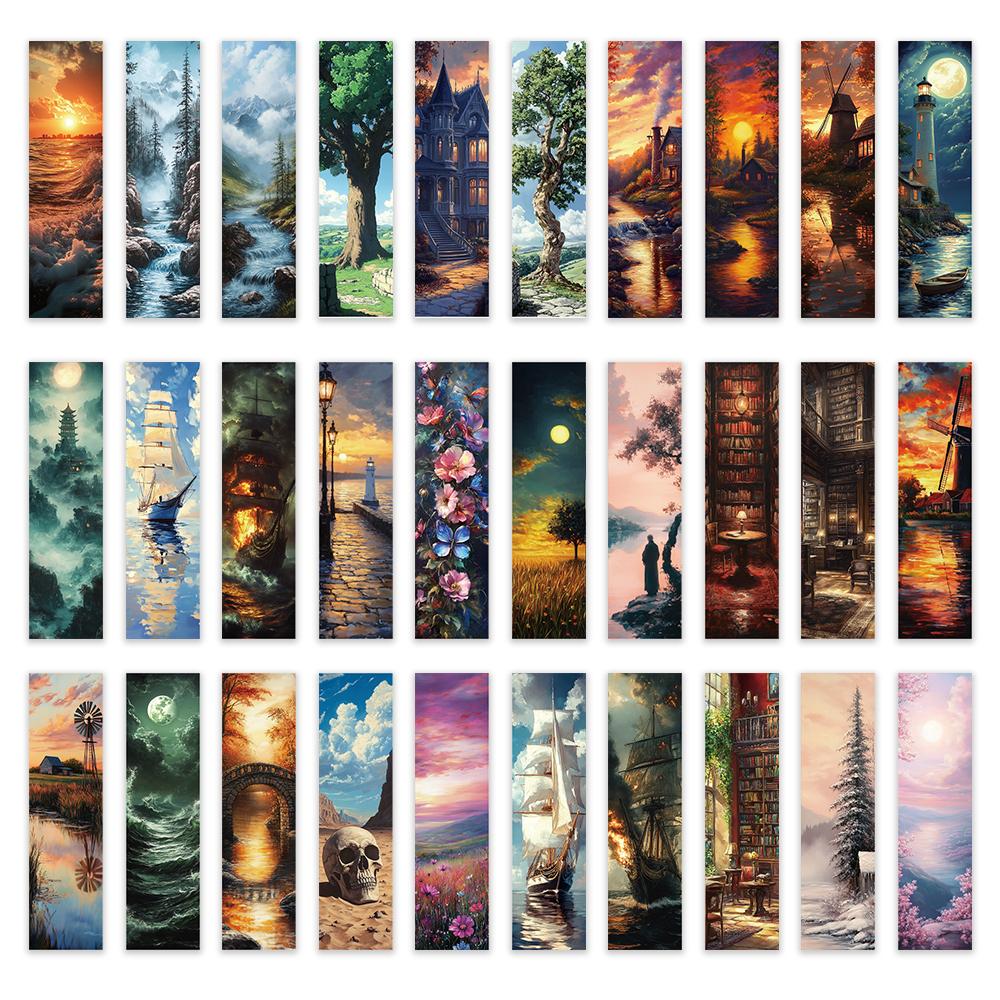 32pcs, Retro Scenery Bookmark, Back to School Season, Christmas, Halloween, Suitable for Teachers, Readers, and Birthday Gifts.