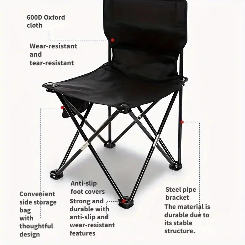 Outdoor Foldable Chair Camping Chair with Side Pocket Picnic Oxford Cloth Chairs Portable Beach Fishing Chairs Camping Chairs