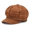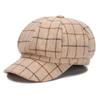 Béret en laine à carreaux pour femmes de style coréen - Casquette polyvalente à huit panneaux pour l'automne et l'hiver