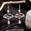Boucles d'oreilles gland perle en forme d'éventail: Pendentif Boucle de Paix Style Chinois Rétro pour Costumes Hanfu
