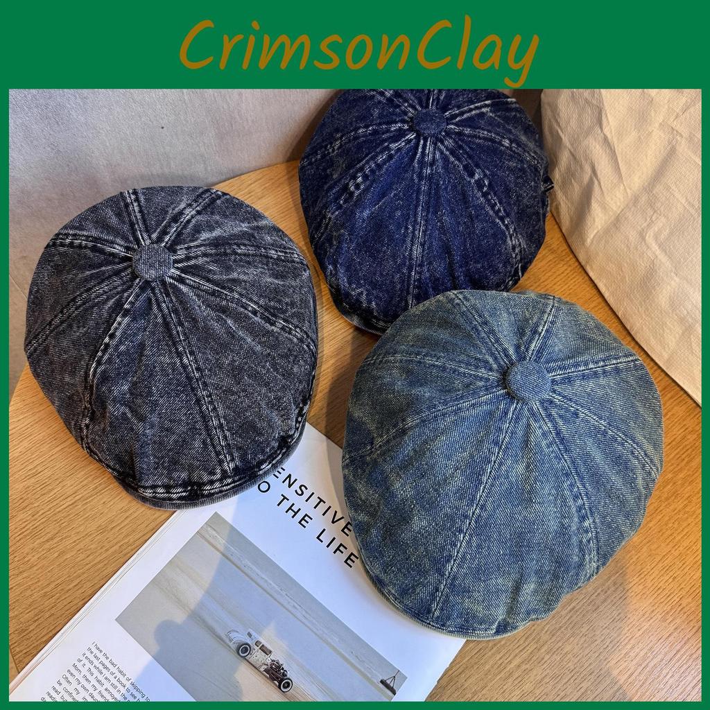 Beret Retro Denim Hat Short Brim Duckbill Cap For Women Casual Wear Street