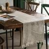 Chemin de table Imanqi Yun Coton Lin Rayé Bicolore avec Pompons Tissés