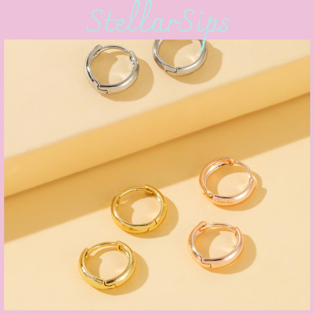 Boucles d'oreilles créoles élégantes en alliage minimalistes géométriques circulaires or argent or rose