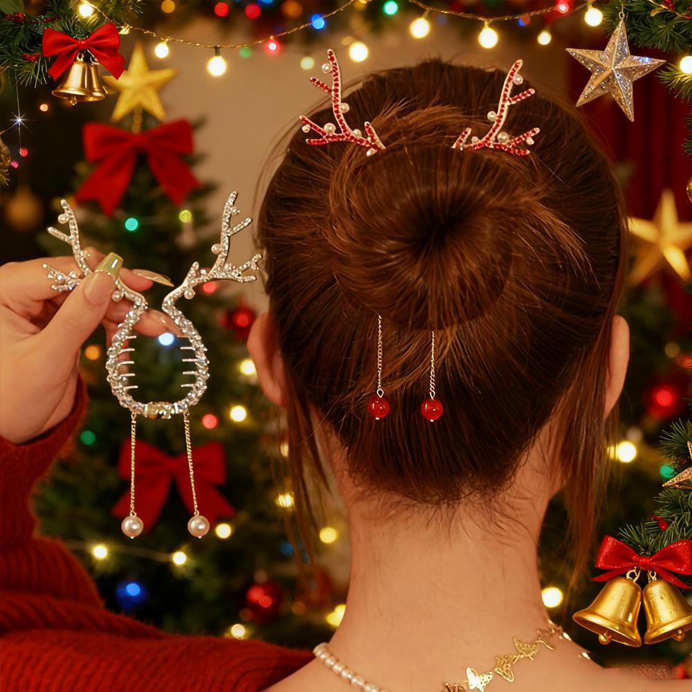 1PC Affordable Christmas Antlers Hair Clip Tassel Ball Head Cute Must-Have Hair Accessory for Festive Occasions