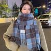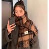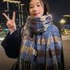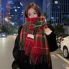 Korean Style Withered Rose Plaid Imitation Cashmere Scarf - Women's Winter Christmas Red Shawl