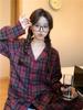 Ensemble de pyjama à carreaux rouges style coréen: Vêtements d'intérieur confortables et décontractés pour couples