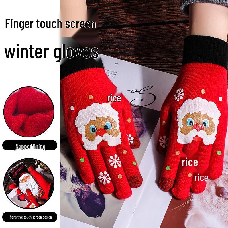 Gants d'hiver en laine à écran tactile dessin animé pour enfants et hommes - Conception à cinq doigts résistante au froid