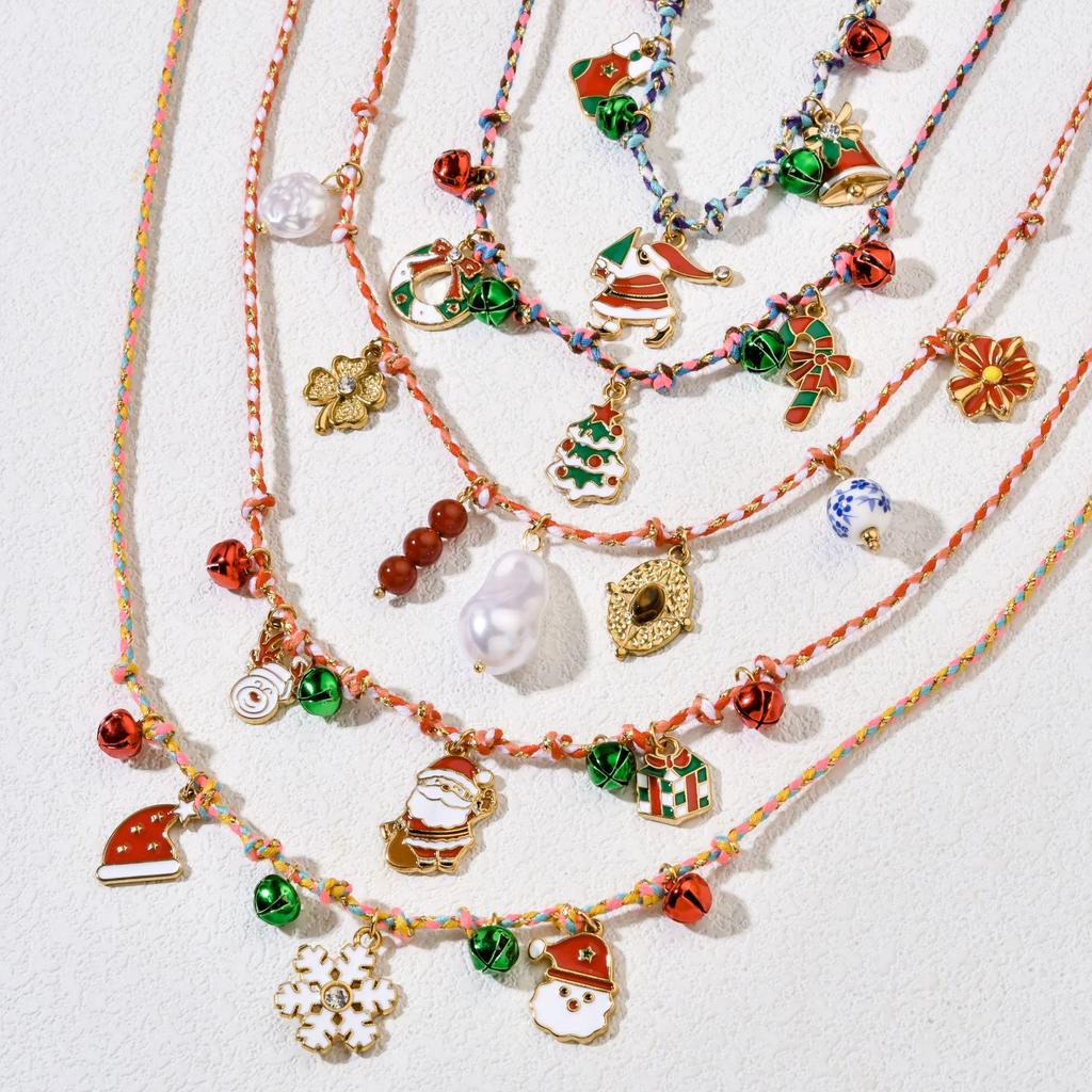 Christmas Series Stainless Steel Necklace with Tree, Socks, and Bells Design