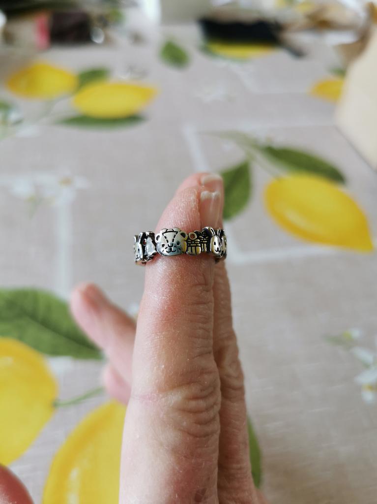 Bague Ouverte Monde Animal en Argent S925 pour Femme: Petit Ours, Lapin, Motif Arbre de Noël