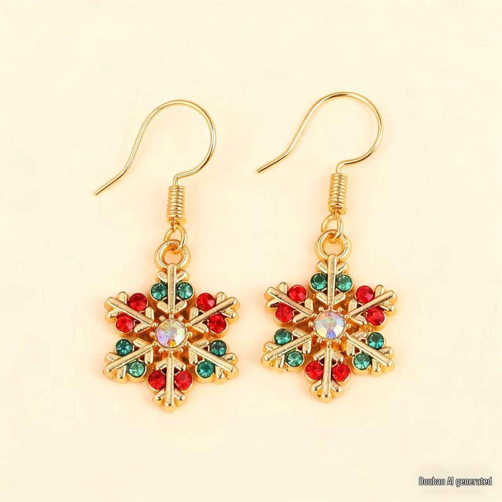 Boucles d'oreilles pendantes flocon de neige strass colorés 2025 - Design élégant à six pétales pour bijoux de Noël pour femmes