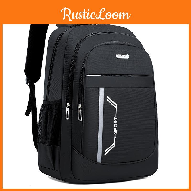 This unisex school backpack features durable Oxford fabric with a striped pattern and embossed leather accents, offering a stylish look, curved shoulder strap system for comfort. Ideal for daily use, it supports laptops up to 16 inches and is easy to maintain by wiping clean with a damp cloth.