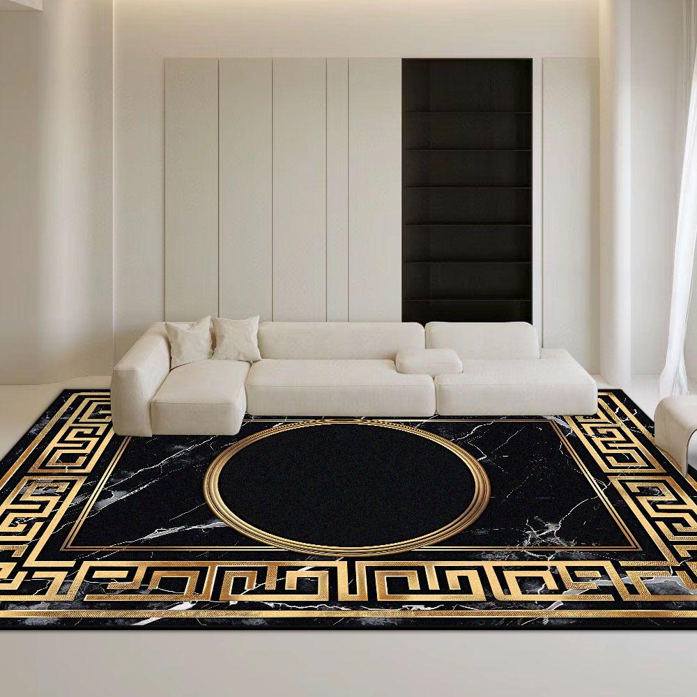 Marble Style Black Carpet Non-slip Big Size Golden Border Luxury Decor Rug for Living Room Soft Easy Cleaning Coffee Tables Mat
