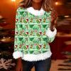 Women's Fashionable Christmas Printed Round Neck Long Sleeved Casual Pullover T-shirt Top