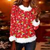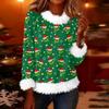 Women's Fashionable Christmas Printed Round Neck Long Sleeved Casual Pullover T-shirt Top