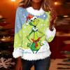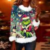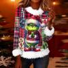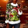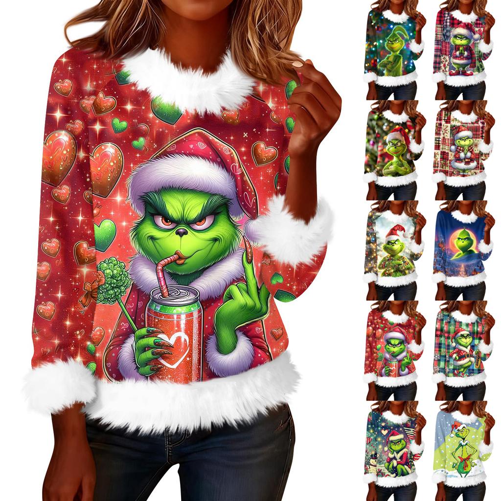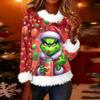 Women's Fashionable Christmas Printed Round Neck Long Sleeved Casual Pullover T-shirt Top