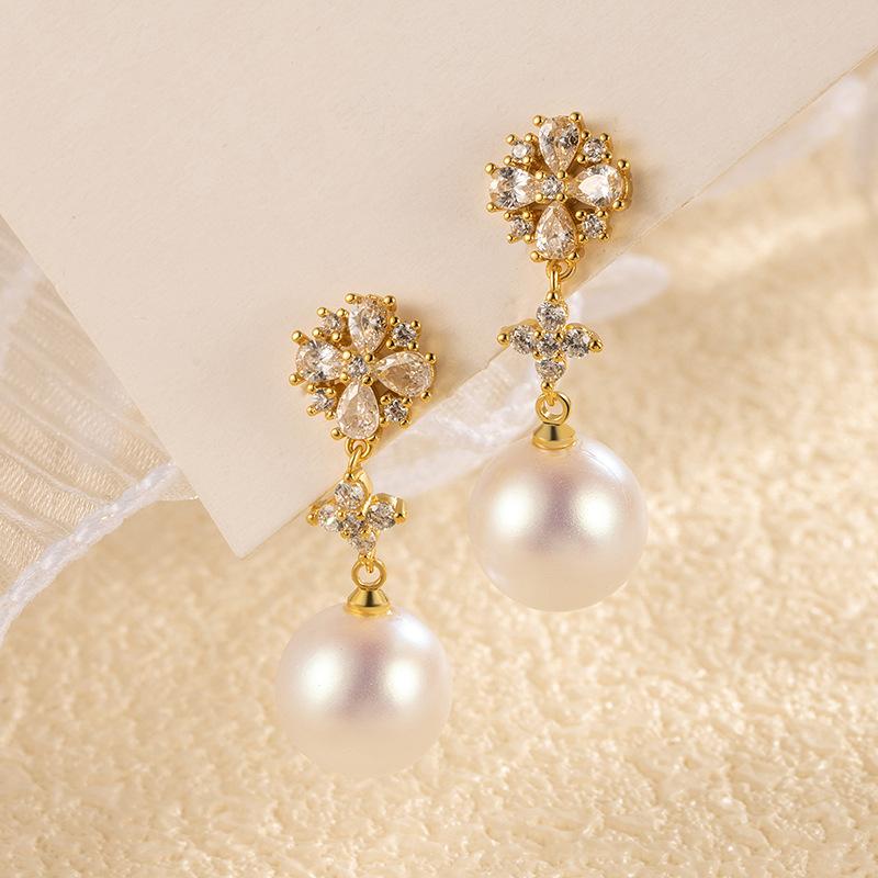 Snowflake Crystal Pearl Tassel Eardrop Earrings
