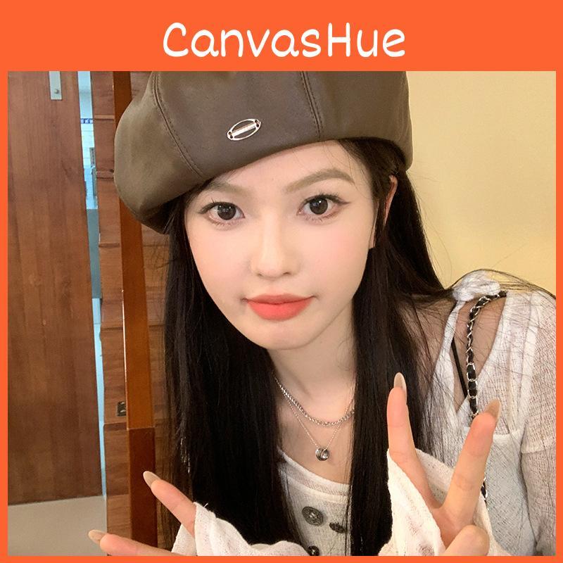 Leather Pu Chic Beret Cap For Women In Trendy Brown Black And Beige Colors Perfect For Fashion Lovers In Spring Autumn