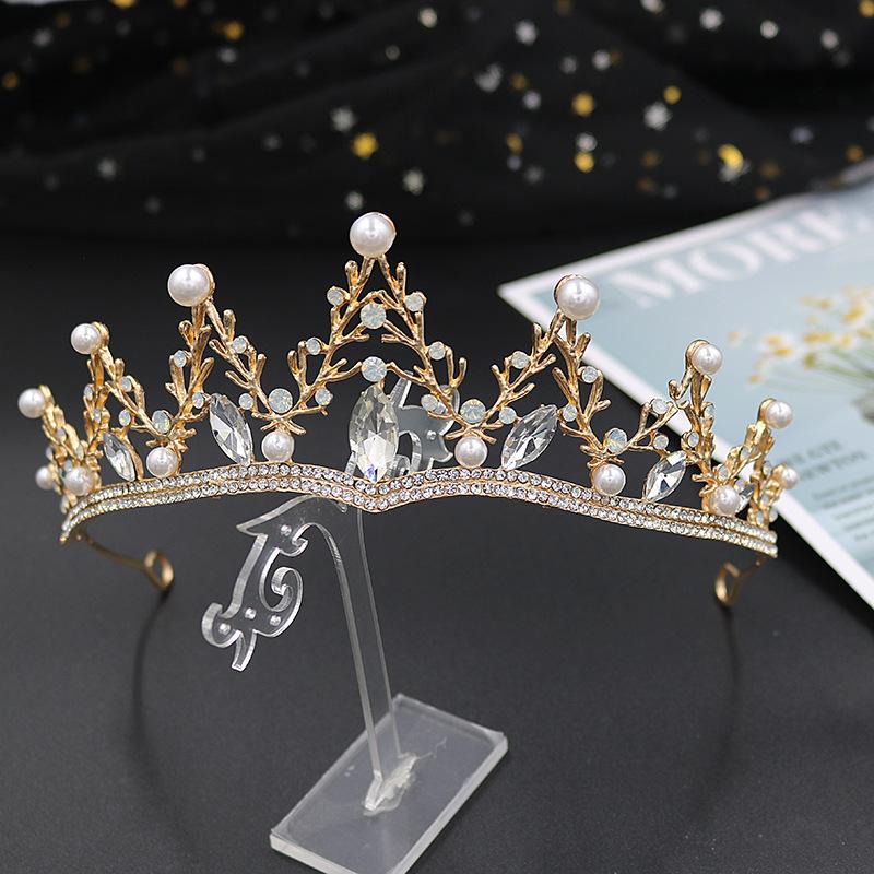 New Alloy Headband Gold Plated Crown Wedding Jewelry Hair Accessories Simple and Elegant Stage Catwalk Headwear Crown