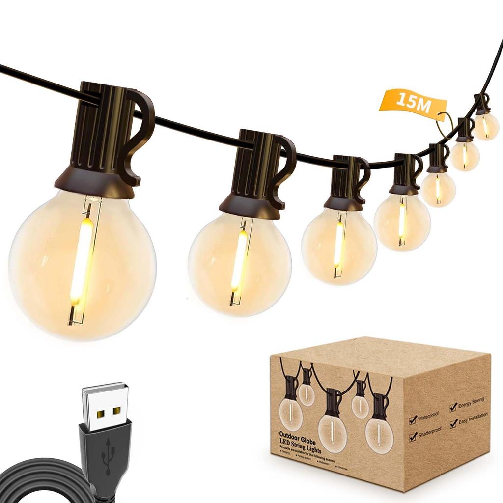 [Rainproof & Versatile] The IP65 waterproof design makes it suitable for indoor and outdoor use, regardless of the season. It can also be used as a garden light, for balconies, patios, gazebos, pergolas, parasols, tent decorations, and as a paper lantern light. The warm-colored light creates a retro, stylish, and moody atmosphere, instantly transforming any space into a lively one. It's perfect for summer festivals, food stalls, birthday parties, Halloween, Christmas trees, shops, and cafes. *Note: The USB port is not waterproof.