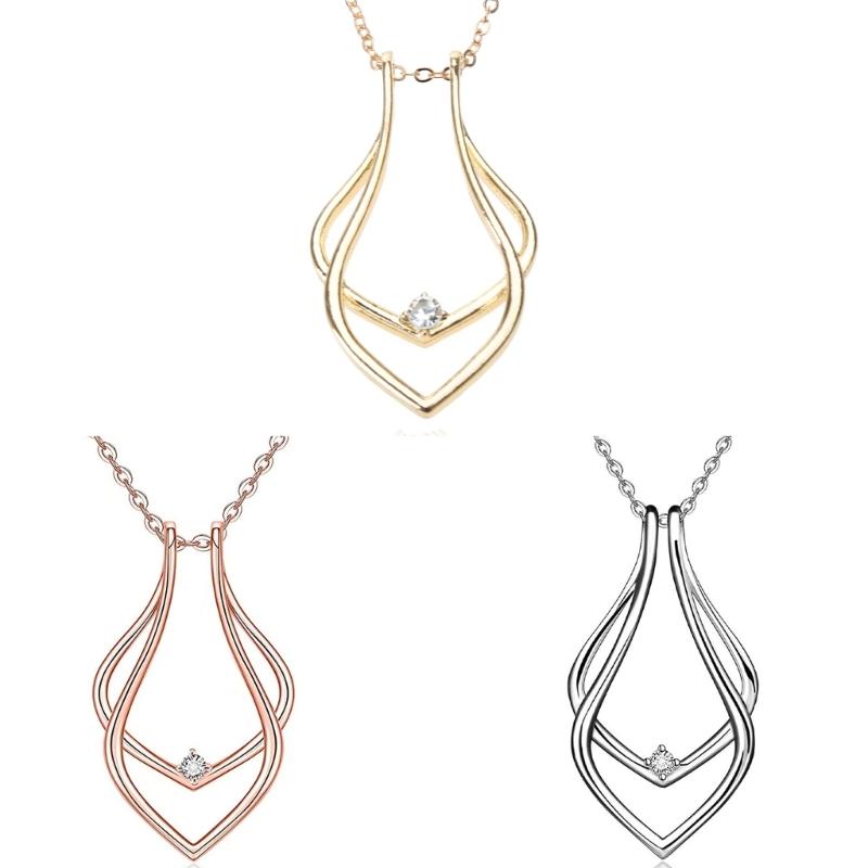 Collier Pendentif Sécurisé pour Fiançailles Forme Géométrique Porte-Bague Collier Argent Délicat Bijoux de Fiançailles pour Femmes Filles