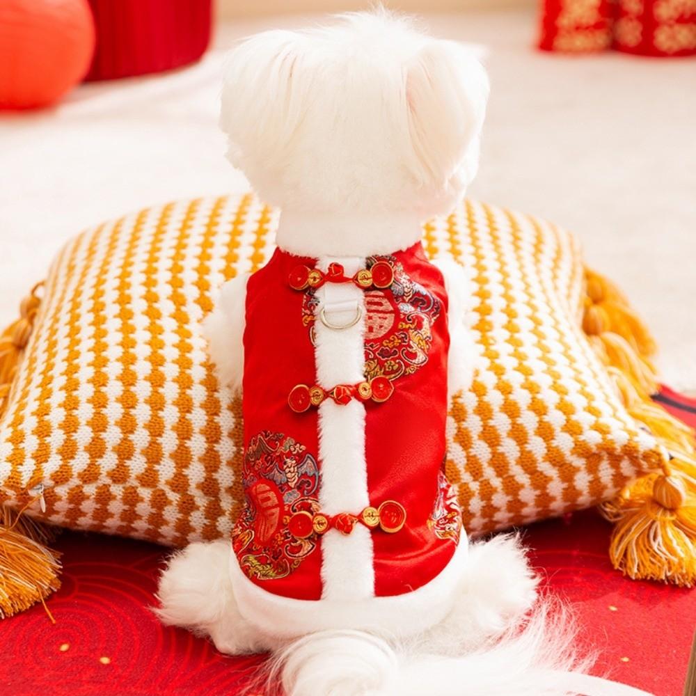 Red Pet Tang Suit Knot Button Cat Coat Kitty Clothes Dog Vest Spring Festival