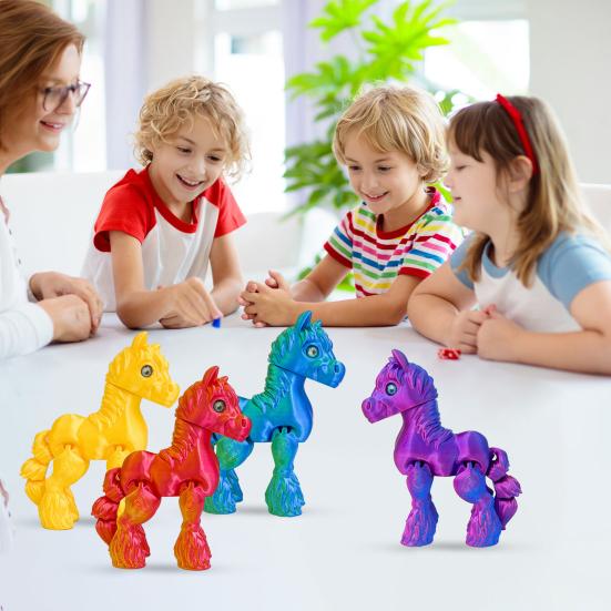 Cette figurine de cheval imprimée en 3D présente des articulations flexibles et mobiles, ce qui en fait un jouet anti-stress idéal pour soulager le stress et stimuler le jeu imaginatif.. Fabriqué en matériau PLA de haute qualité, il arbore des couleurs vives et une texture lisse qui capturent de manière réaliste l'apparence du cheval..