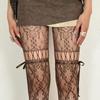 2025 Y2K Lolita Women Lace Up Tights Classic Lace Mesh Hollow Out Stocking Bottomed Pantyhose Retro Rattan Stocking